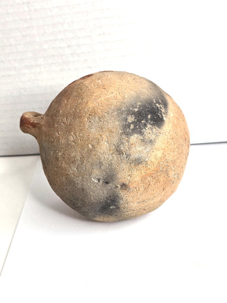 The physical properties of the pottery itself offer further insights. The vessel appears to be made from a local earthenware clay, and the slightly uneven surface suggests it was hand-coiled, a traditional method in the region, rather than thrown on a potter's wheel. The noticeable blackening on the bottom and one side of the mug is indicative of its use. This "fire clouding" is the result of direct contact with flames or hot embers during the firing process or from subsequent use in heating liquids or cooking. This detail strongly suggests the mug was a utilitarian object, part of the daily life of its owner.