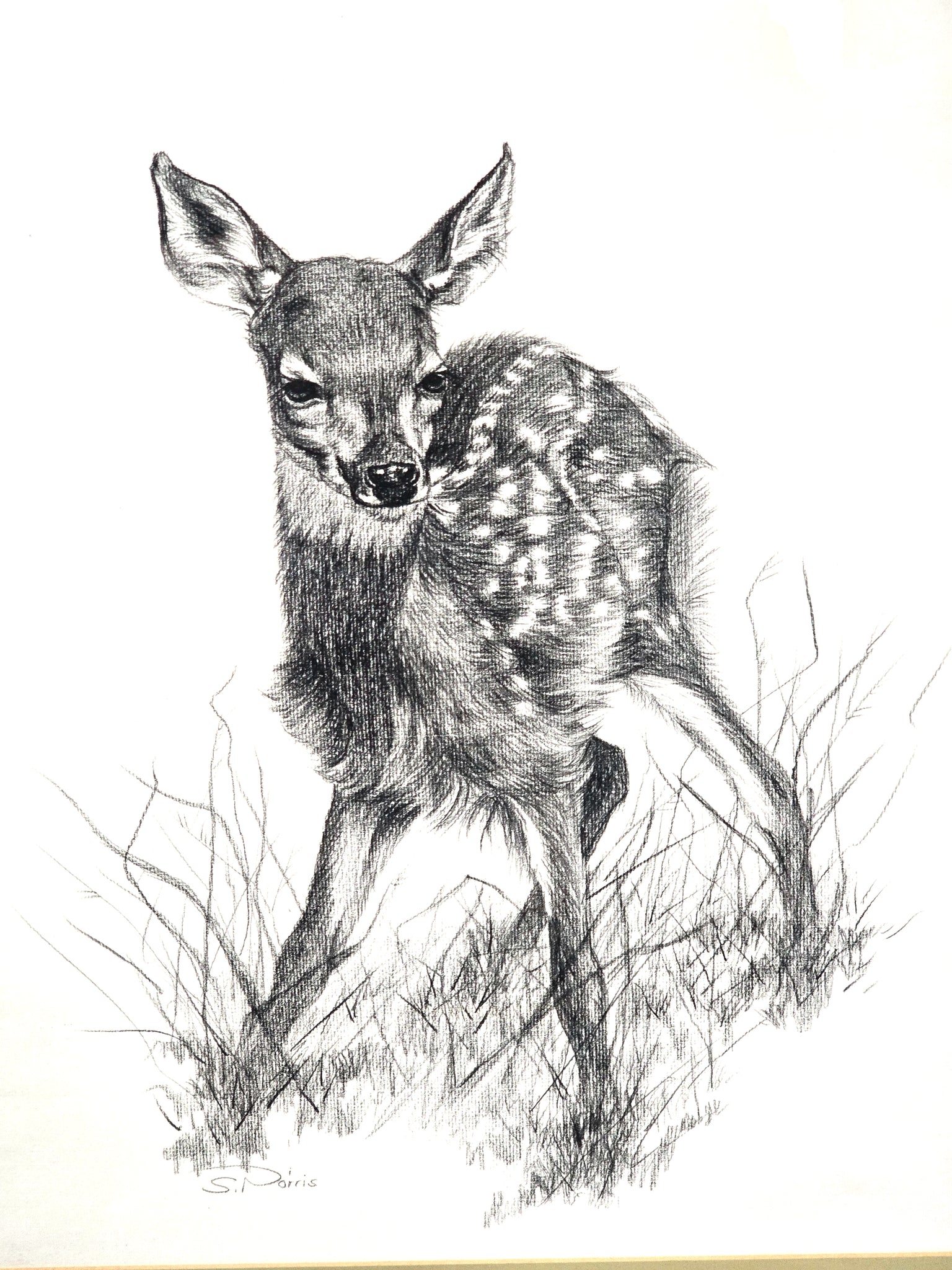 Fawn Artist Sketch Signed in Pencil by S. Dorris ... Framed in Good Condition, See Photos - Measures 23" W x 29" H ... Includes FREE SHIPPING - Original 100% hand painted, artist signed painting. Note market on-average for fine art 6.5% annual return rate, projected to hit $115 billion by 2032.