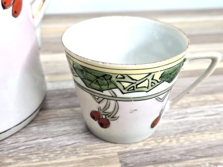 The distinctive "goose neck" or "swan neck" spout is another hallmark of Art Nouveau design, adding to the set's elegant and graceful appearance. The hand-painted nature of the decoration indicates that this was a quality piece. While it's difficult to pinpoint the exact manufacturer without a clear maker's mark, it was most likely produced in Germany or Austria, which were major centers for porcelain production in this style. Many factories in these regions produced high-quality, beautifully decorated porcelain for the home.