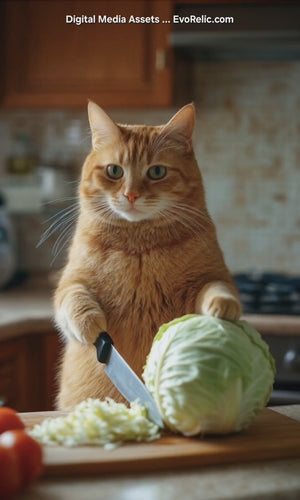 Cat Cutting Lettuce ... Buy this original full-motion art MP4 digital media asset by EvoRelic.com. One-of-a-Kind, original live motion digital art MP4, this unique mixed media offers lasting value with multiple digital applications and instant access. Upon purchase you receive an email link to download your unique video full-motion historic art clip with no EvoRelic logo, so its yours uniquely for display on digital media picture frames, the photo literally comes alive in full motion 5-second clip. And you can also resell it as NFT or tokenized digital asset to investors in your Blockchain portfolio, or integrate to Web 3.0 metaverse 3D VR environments. Purchase and download today to begin building your collection of valuable digital assets and elevate your home, office, and virtual space.