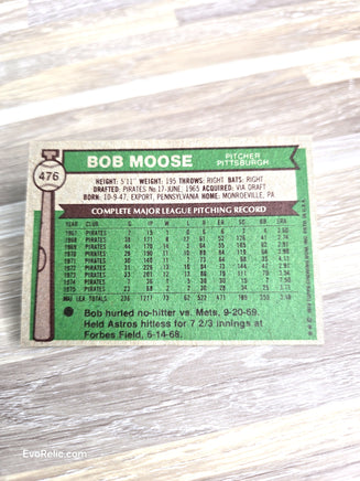 Bob Moose was a right-handed pitcher who notably spent his entire ten-year MLB career (1967-1976) with the Pittsburgh Pirates. A product of Western Pennsylvania, Moose was a versatile arm for the team, working as both a starter and a reliever. His most celebrated achievement came on September 20, 1969, when he pitched a no-hitter against the eventual World Series champion New York Mets. He was also a key member of the Pirates' successful teams in the early 1970s, winning five NL East titles and earning a World Series ring in 1971, where he made four appearances.
