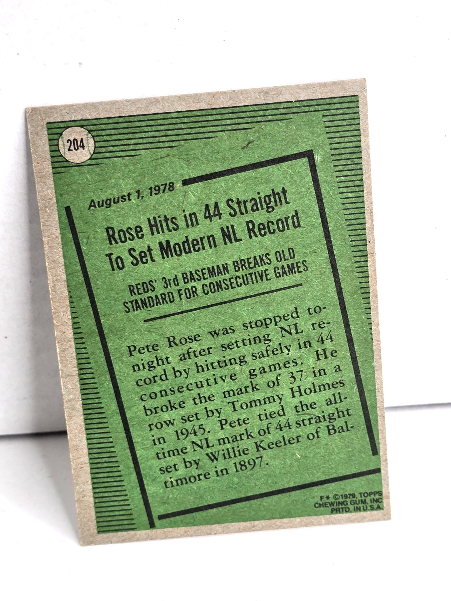 1979 Pete Rose Baseball Card Topps No. 204 - Excellent Condition, Minor Wear See Photos ... Includes FREE SHIPPING. Note sports memorabilia market hit $16 billion in 2023. Projections indicate it will reach $52 billion by 2032, with a compound annual growth rate (CAGR) of nearly 14% during the forecast period (2024-2032).