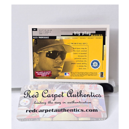 Alex Rodriguez Autograph Baseball Card Mariners 2000 Upper Deck No. 385 - Certified Signature by Red Carpet Authentics #3810 - Excellent Condition, See Photos - Includes FREE SHIPPING. Note sports memorabilia projected $30 Billion revenue in 2030 with returns on investment about 6% Compound Annual Growth Rate (CAGR).