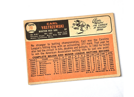 Carl Yastrzemski Red Sox Baseball Card 1966 Topps No. 70 - Good Condition, Note Fold on Upper Right Wear See Photos - Includes FREE SHIPPING. Note sports memorabilia market hit $16 billion in 2023. Projections indicate it will reach $52 billion by 2032, with a compound annual growth rate (CAGR) of nearly 14% during the forecast period (2024-2032).