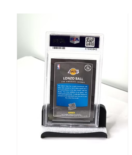 Lonzo Ball Basketball Card NBA 2017 Panini No. 199 PSA Graded Mint Condition, See Photos - Includes FREE SHIPPING. Note sports memorabilia projected $30 Billion revenue in 2030 with returns on investment about 6% Compound Annual Growth Rate (CAGR).