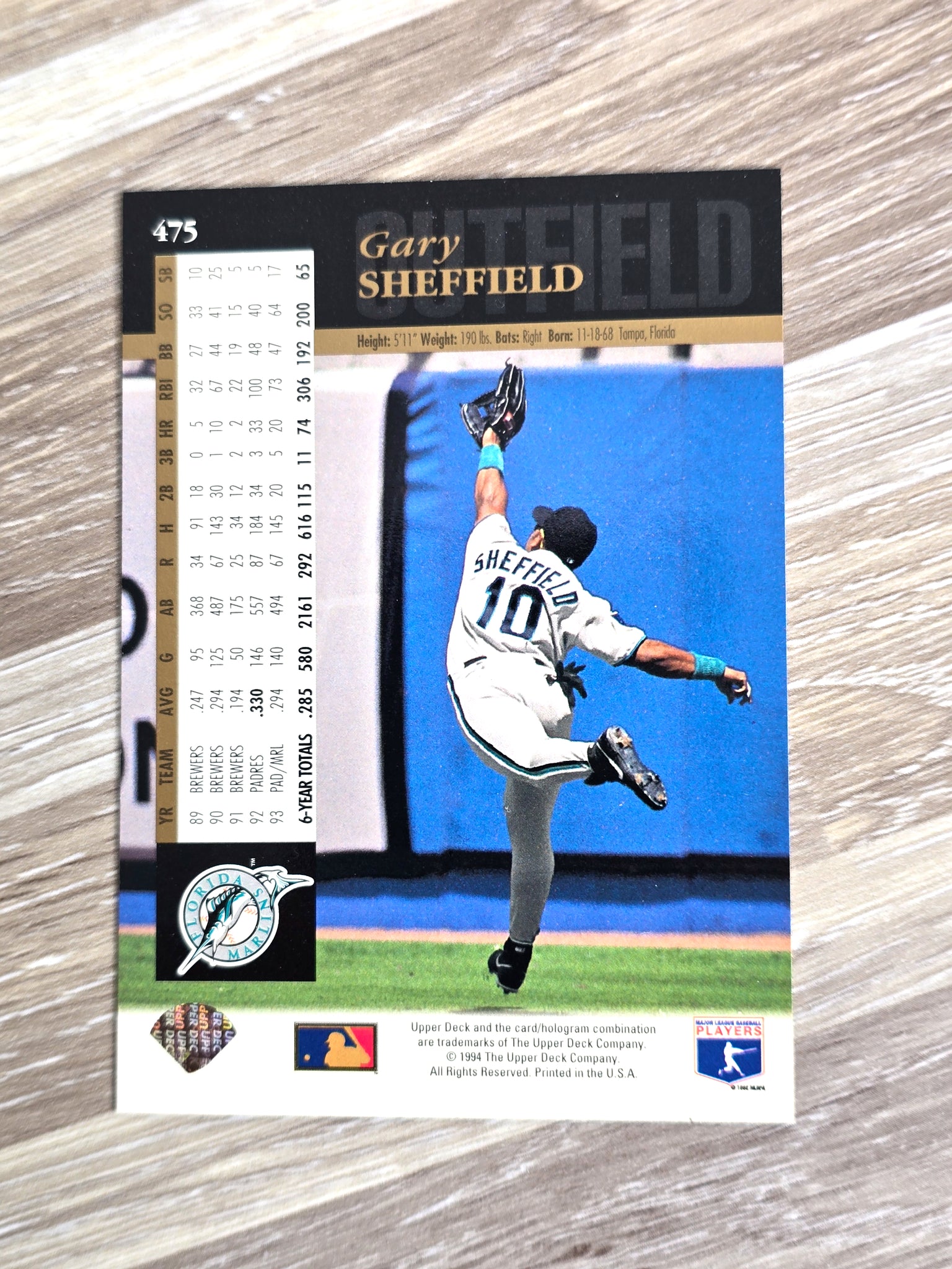 Gary Sheffield Baseball Card 1994 Upper Deck No. 475