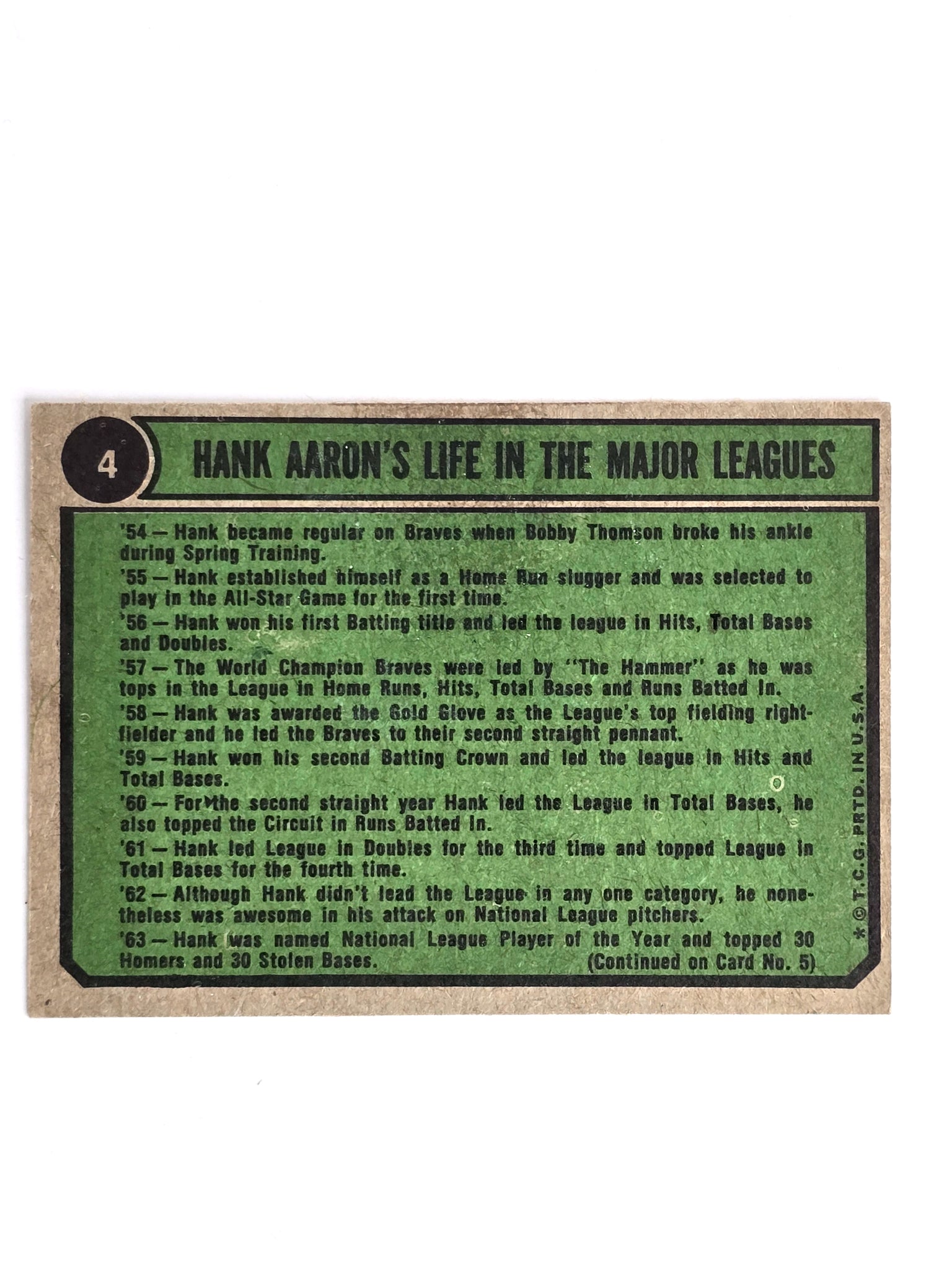 Hank Aaron Special Baseball Card 1974 Topps No. 4