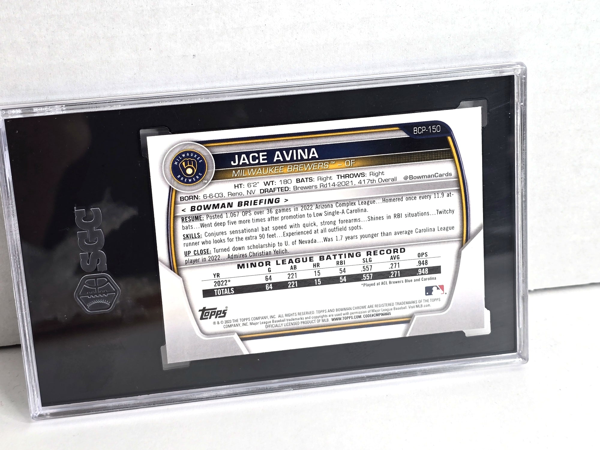 Jace Avina Baseball Rookie Card 2023 Topps Bowman No. BCP-150  ... Mint Condition 9 Graded SGC, review photos ... Includes FREE SHIPPING. Note sports memorabilia market hit $16 billion in 2023. Projections indicate it will reach $52 billion by 2032, with a compound annual growth rate (CAGR) of nearly 14% during the forecast period (2024-2032).