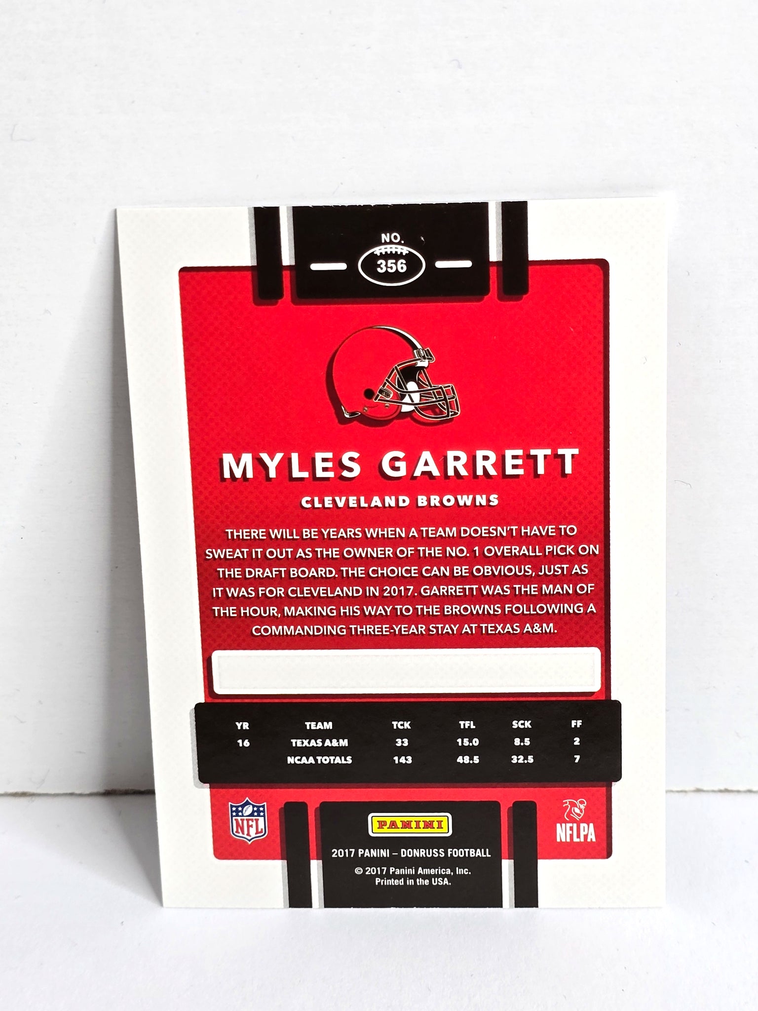 Myles Garrett Rookie Football Card 2017 Panini Donruss No. 356 - Near Mint Condition, See Photos ... Includes FREE SHIPPING. Note sports memorabilia market hit $16 billion in 2023. Projections indicate it will reach $52 billion by 2032, with a compound annual growth rate (CAGR) of nearly 14% during the forecast period (2024-2032).