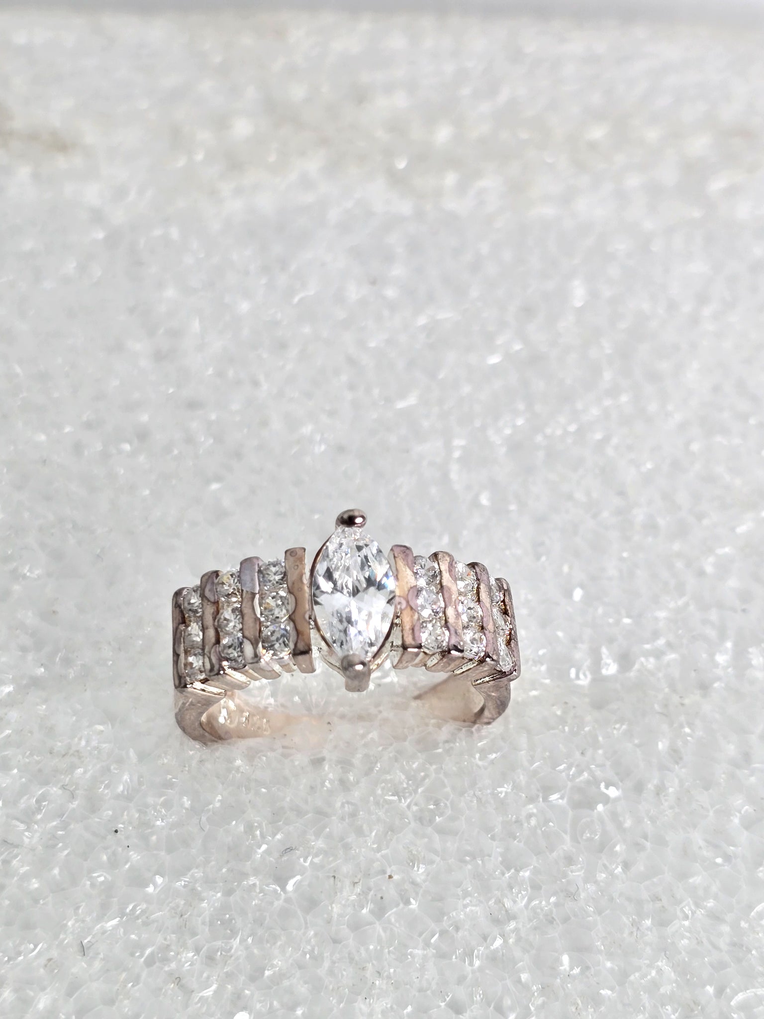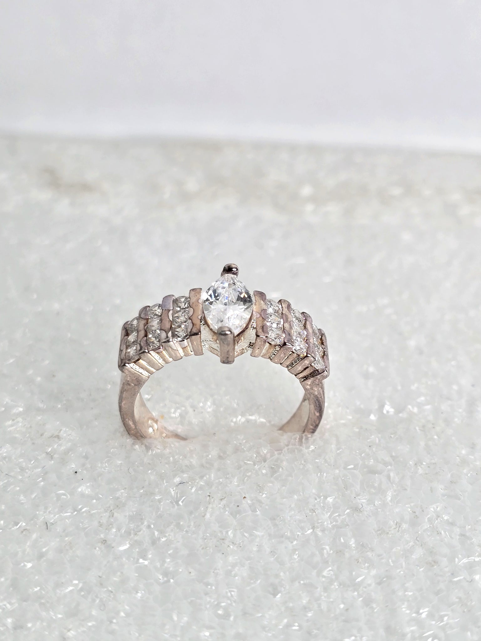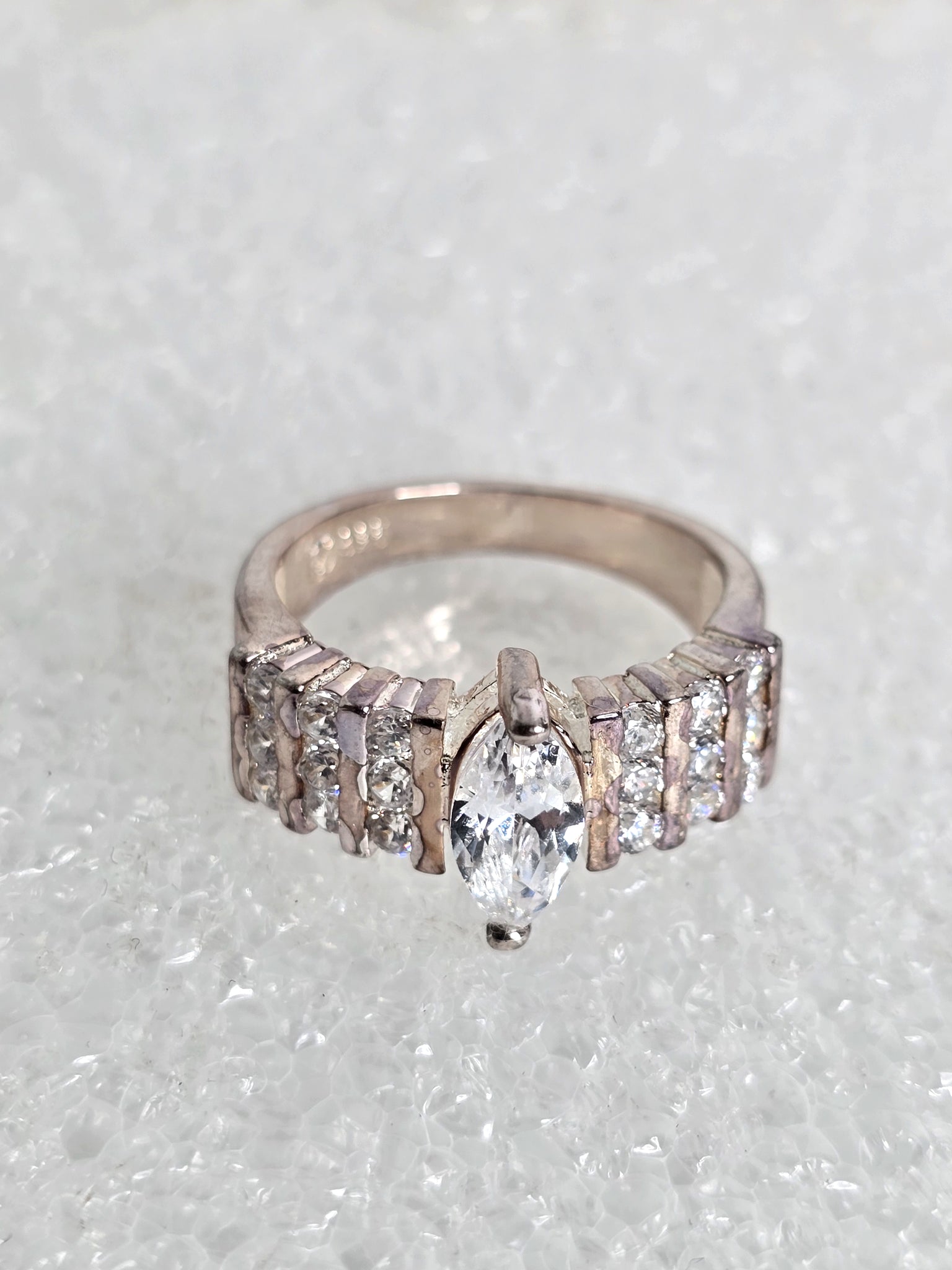 Sterling Silver Ring with Diamond Clusters Size 8 - Excellent Condition, See Photos (note large stone CZ and small cluster tested as real diamonds) ... Includes Free Shipping. Note sterling silver such as jewelry, coins etc. have delivered on-average 4.8% annual returns on investment since 1979. Silver is a valuable asset that remains stable long-term regardless of economic market swings up and down. Silver values just keep growing steady.