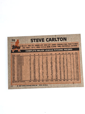 Steve Carlton Baseball Card 1983 Topps No. 70