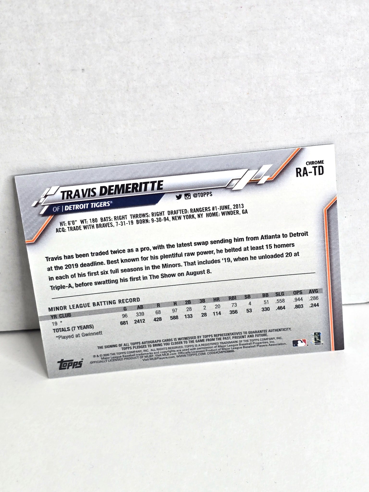 Travis Demeritte Signed Tigers Rookie Baseball Card 2020 Topps No. RA-TD - Near Mint Condition, See Photos ... Includes FREE SHIPPING. Note sports memorabilia market hit $16 billion in 2023. Projections indicate it will reach $52 billion by 2032, with a compound annual growth rate (CAGR) of nearly 14% during the forecast period (2024-2032).